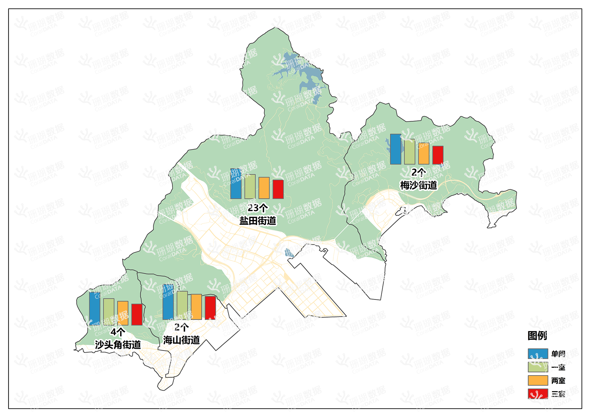 2025年第二季度盐田区各街道城中村数量及各户型租金分布图