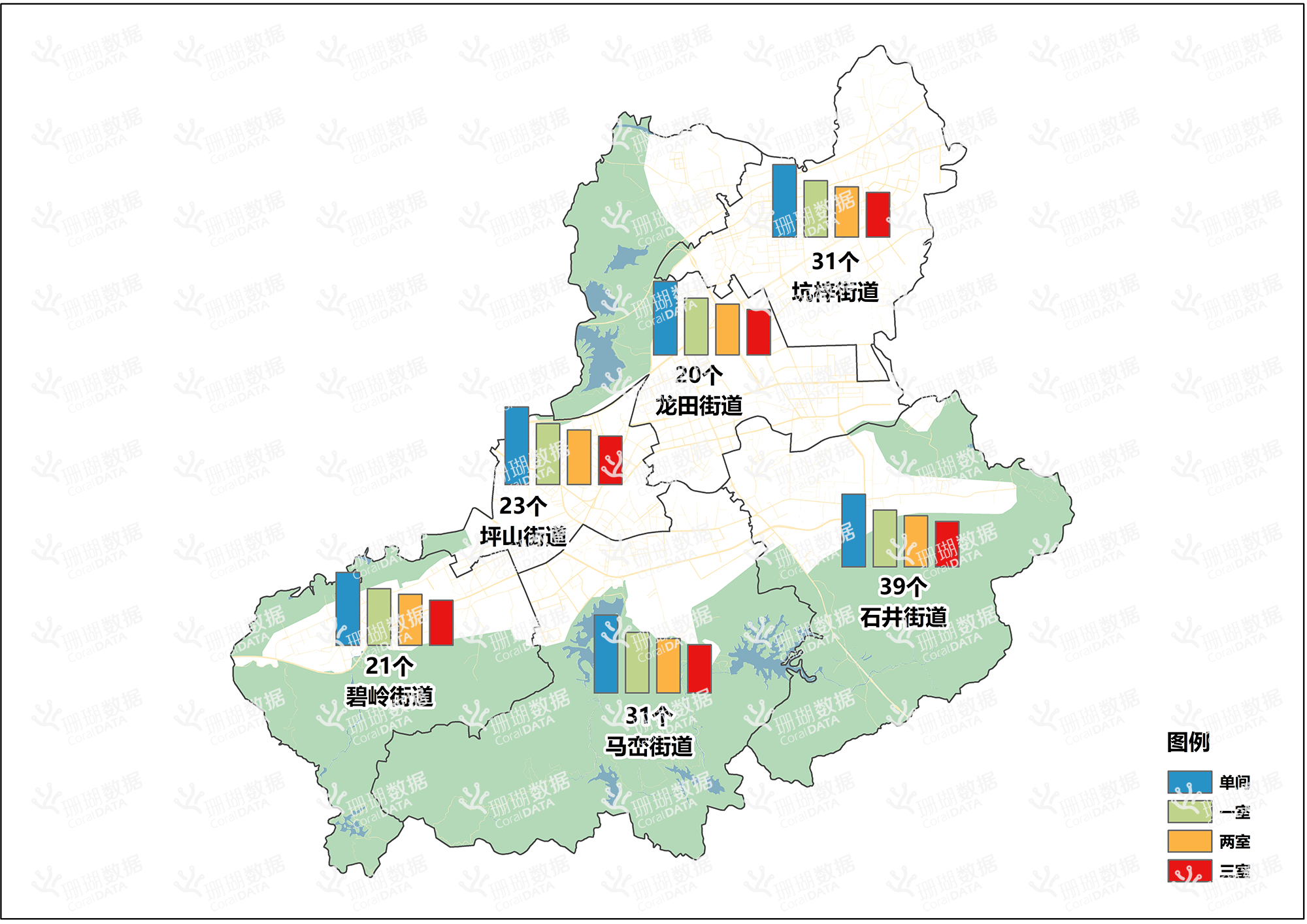 2025年第二季度坪山区各街道城中村数量及各户型租金分布图