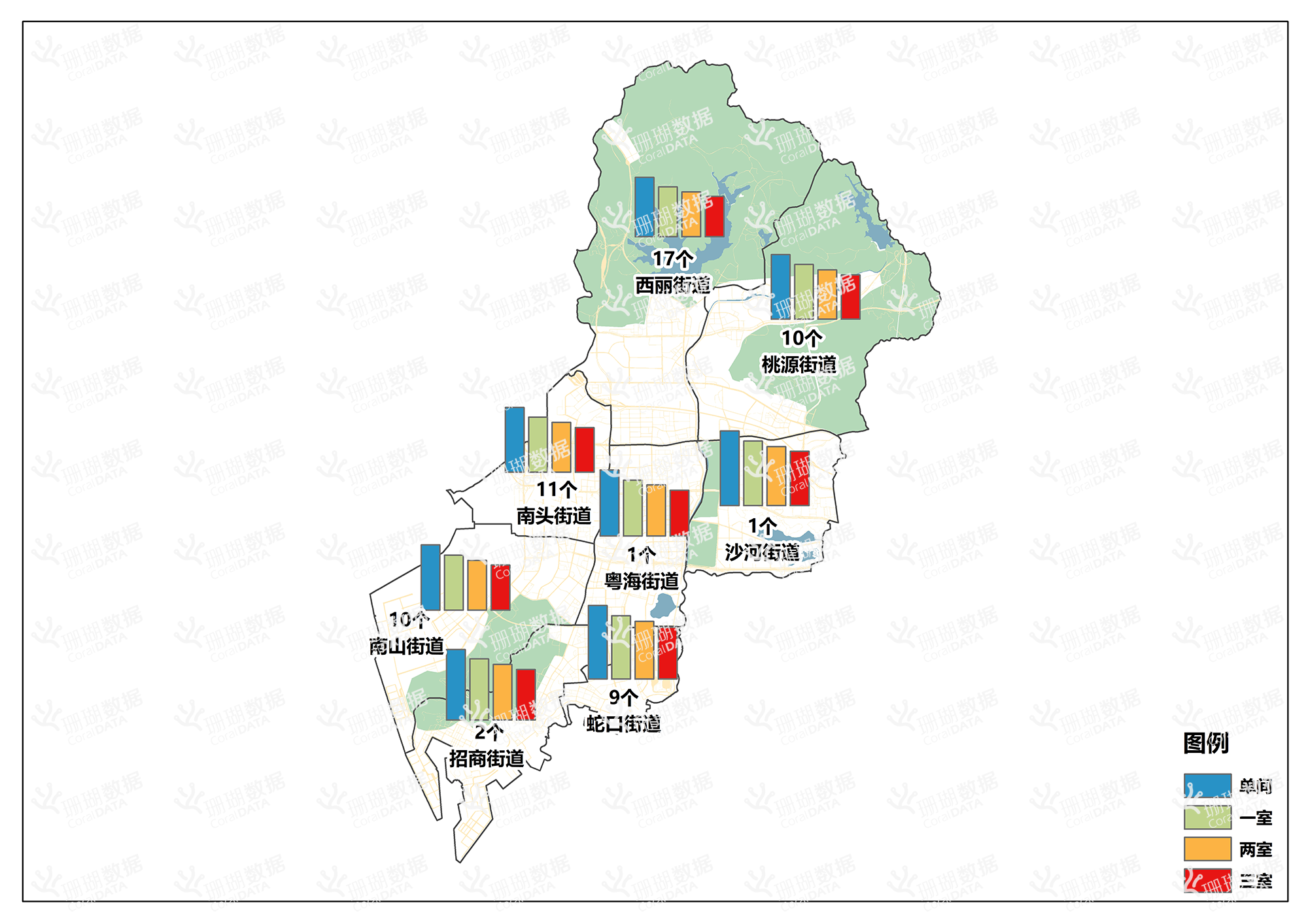 2025年第二季度南山区各街道城中村数量及各户型租金分布图