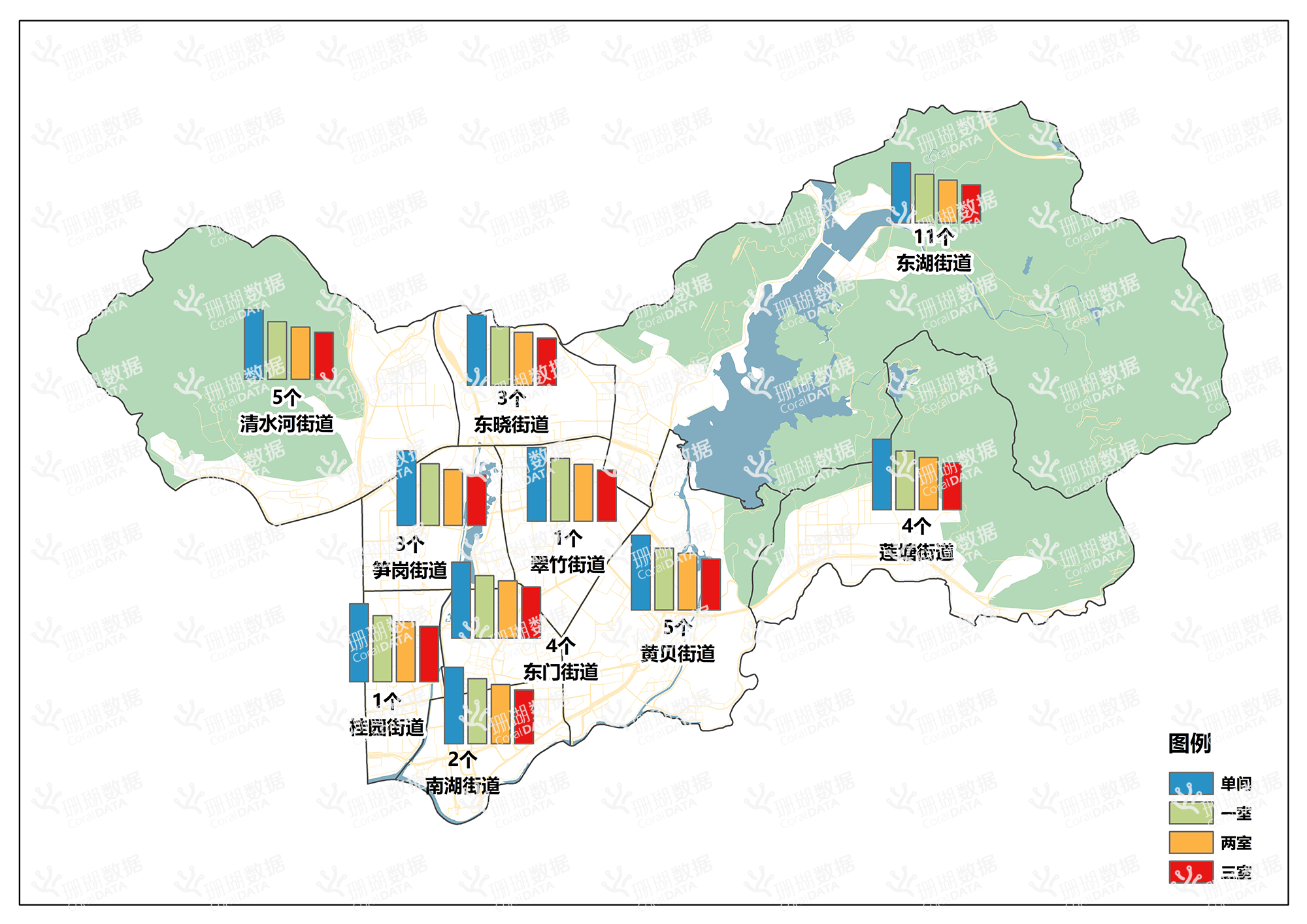 2022年第三季度罗湖区各街道城中村数量及各户型租金分布图